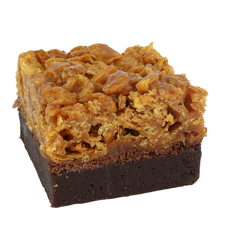 Chocolate brownie topped with a chunky layer of malted caramel cornflakes. It's like a Honey Joy for grown ups.